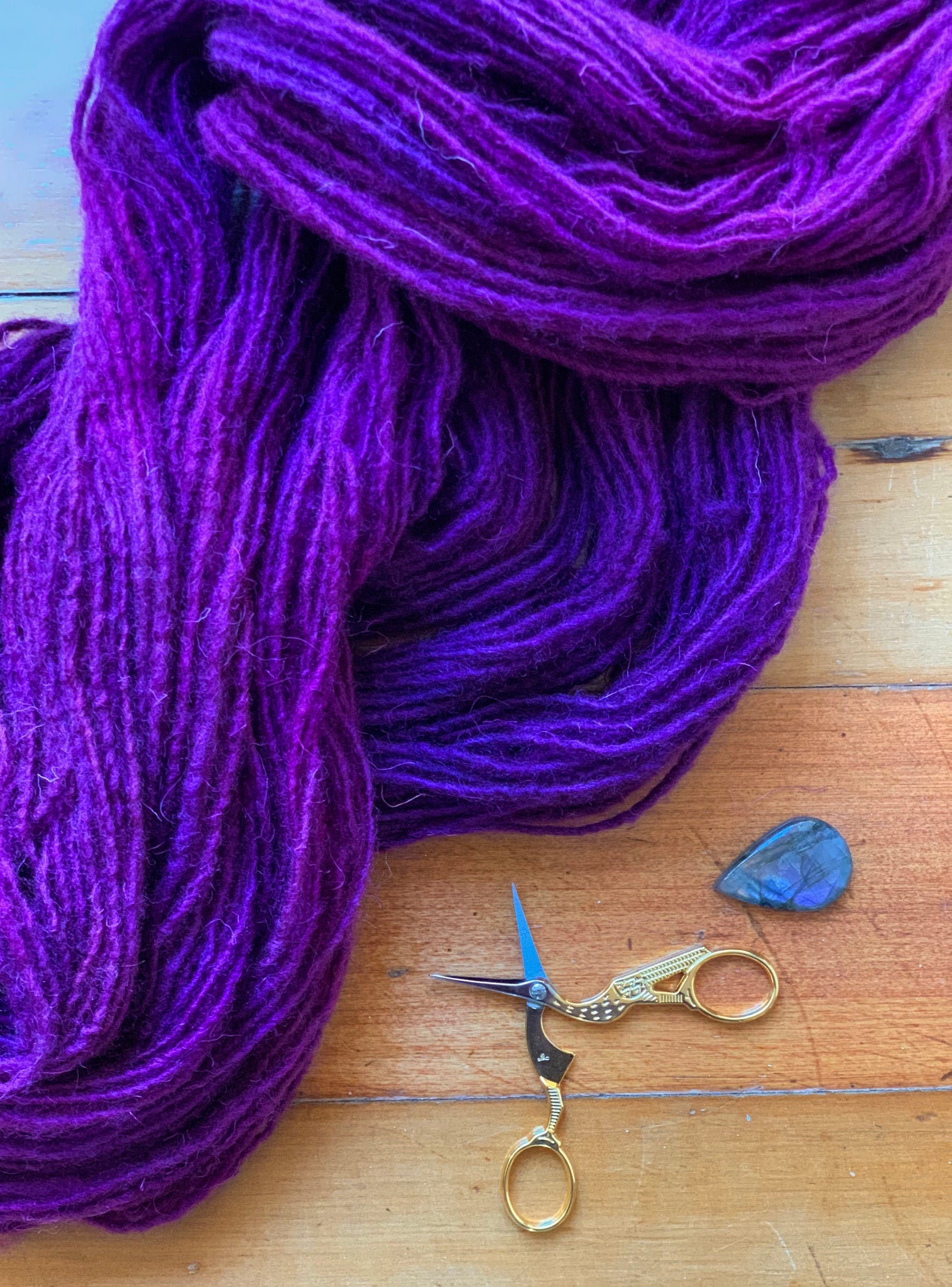 La madeja fue pintada a mano tomando como referente el fruto del CALAFATE.